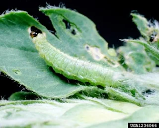 | Fig. 3. Alfalfa weevil larva. Photo: Clemson University - USDA Cooperative Extension Slide Series,Bugwood.org. |